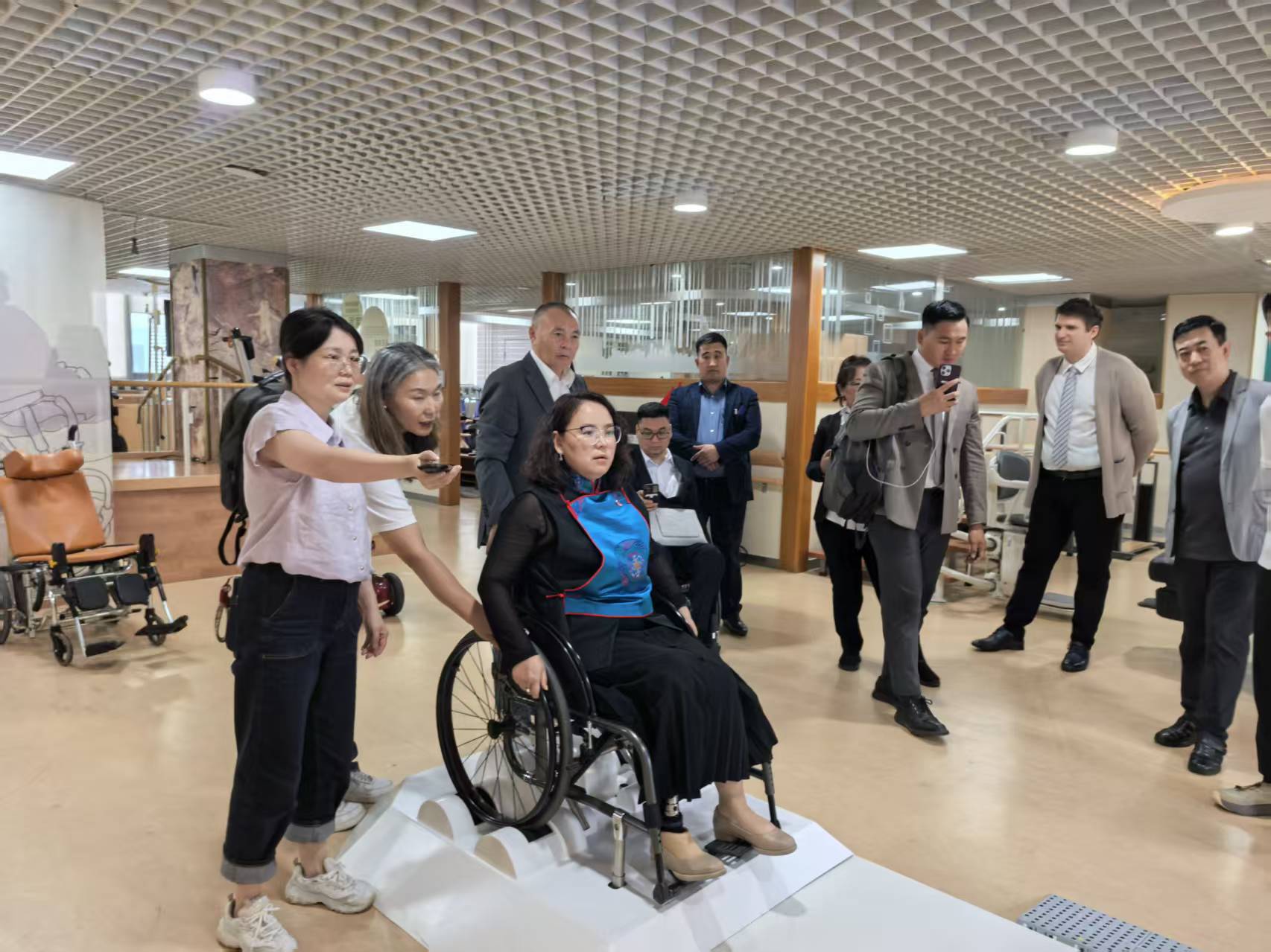 代表团还参观了中国残疾人辅助器具展示厅,重点了解国产轮椅、儿童康复辅具、居家无障碍设施、视力与听力辅助器具等产品的研发理念、技术特点及应用场景,并亲身体验了部分辅助器具的使用功能。奥特根•萨仁楚伦议员对快速发展的中国残疾人事业给予高度评价,期待双方加强残疾人事业交流与合作,共同推动国际残疾人事业发展。